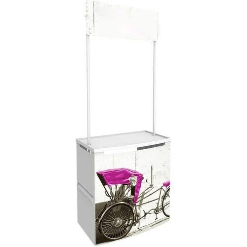 The Campaign Counter is an indoor and outdoor promotional counter featuring a quick assembly and strong, easy to clean plastic parts. The Campaign Counter's simple assembly and eye-catching design make it great for retail promotion and use in trade show and event environments. Easily store and transport in a convenient carry bag.