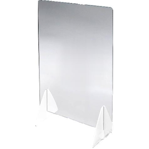 1/4" Clear acrylic panel sneeze guard with double white designer acrylic triangle legs. Includes 2"H pass through. Blank. Add an optional Digi-Color Imprint of a logo or customer message. Can be customized to size, shape, and options specifications. Easy assembly. Installation not included. Non-returnable. Made in the USA.