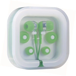 The Color Pop Earbuds can be used with any standard audio device. The set includes three interchangeable soft rubber earbud covers a plastic case with cable storage a standard 3.5mm audio jack and a 38 inch earbud cable.