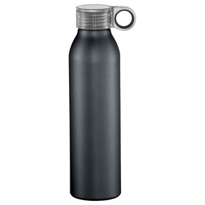 The Grom 22oz Aluminum Sports Bottle features single wall construction with a screw-on, spill-resistant clear lid with color pop feature on the hook. Easy to carry, it comes in a matte, metallic color finish. Hand wash only and follow any included care guidelines.
