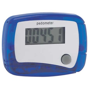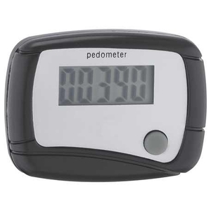 The In Shape Pedometer has an LCD display and counts steps. Comes with a belt clip and an auto-off power-saving function.