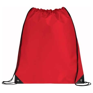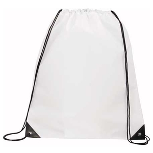 The Oriole Drawstring Bag features a large open main compartment with a cinching rope closure and reinforced vinyl corner tabs.