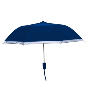 Reflective border umbrella,New. 42" arc auto open folding umbrella with a 1" reflective border around perimeter. Rubberized handle and matching sleeve. Great for any safety program. Perfect for those dark,rainy nights where you need to be seen, Safety.